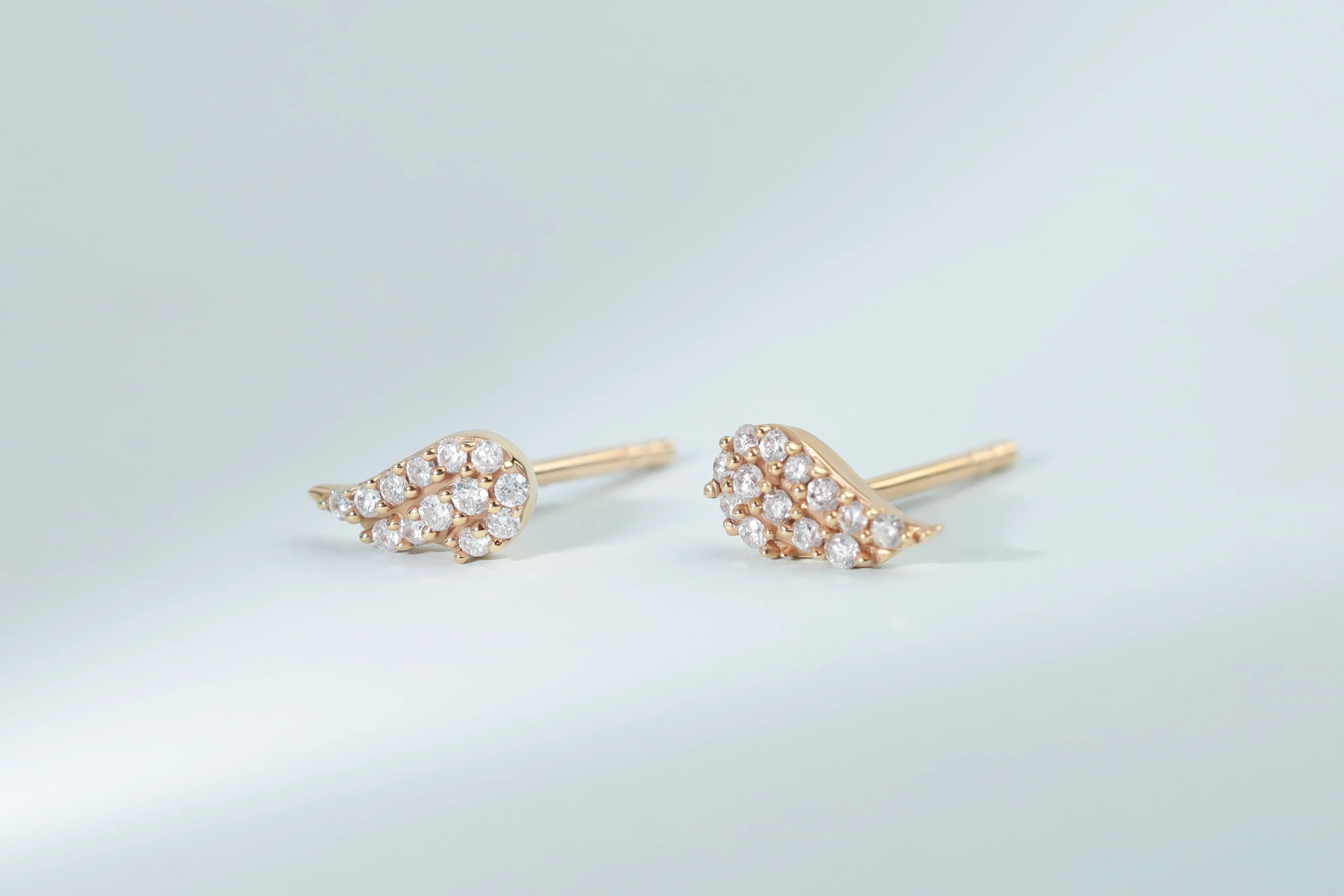 Серьги из золота с 26 бриллиантами в огранке «круглая» весом 0,11 карат, цвет 4, чистота 5. Размер изделия 7 x 3 мм.