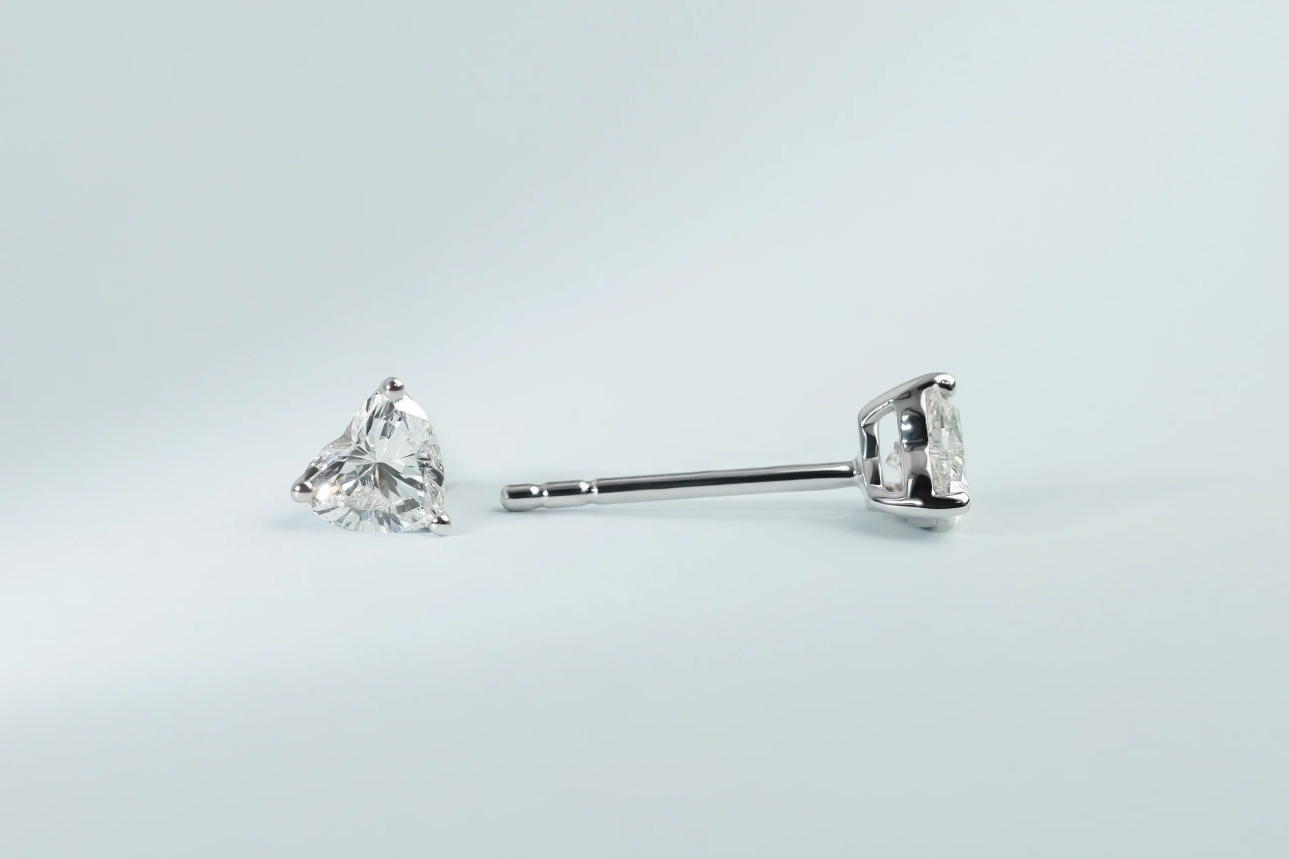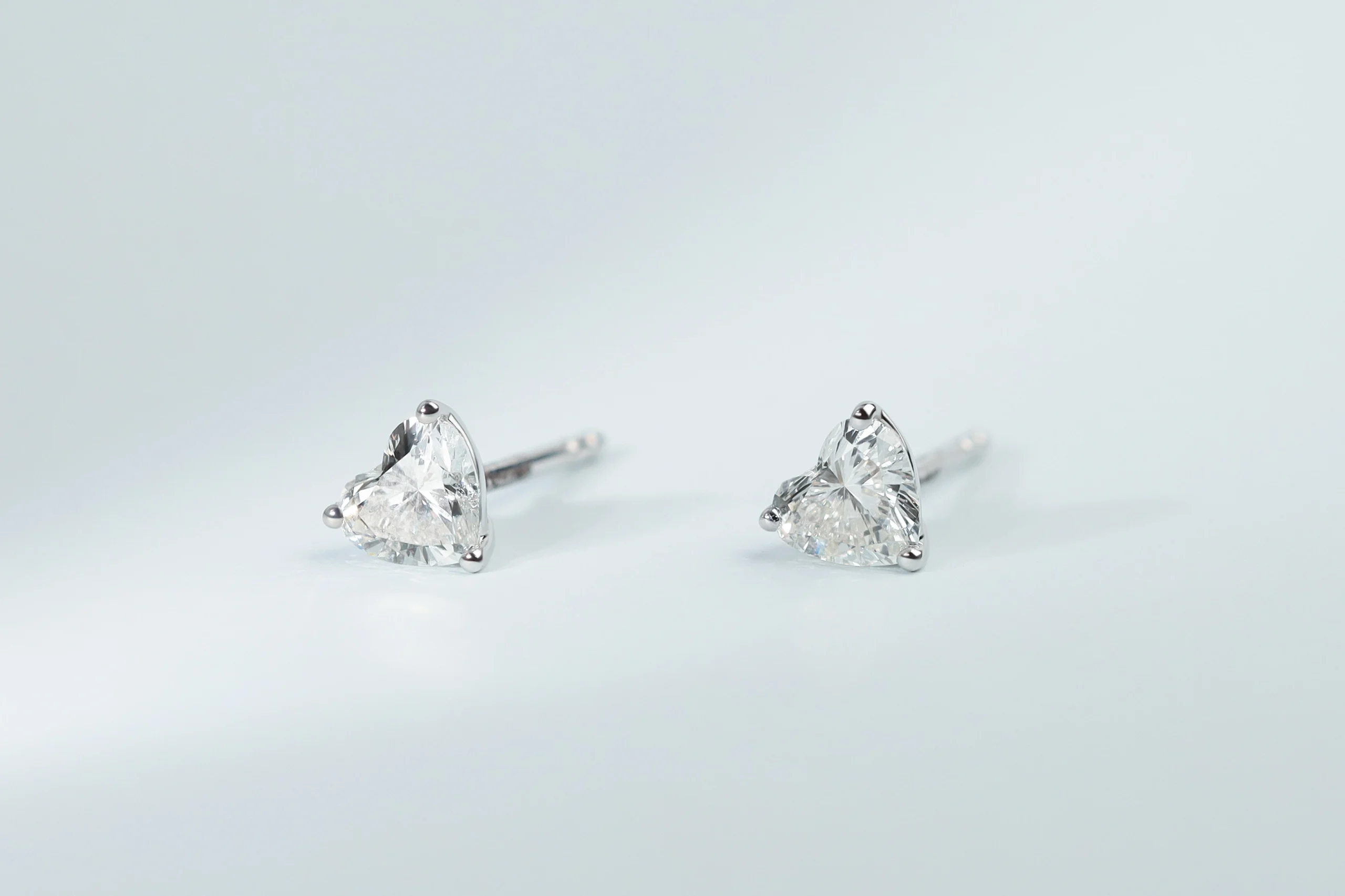 Серьги из золота с 2 бриллиантами в огранке «сердце» весом 0,53 карат, цвет 4, чистота 4. Размер изделия 4 мм.