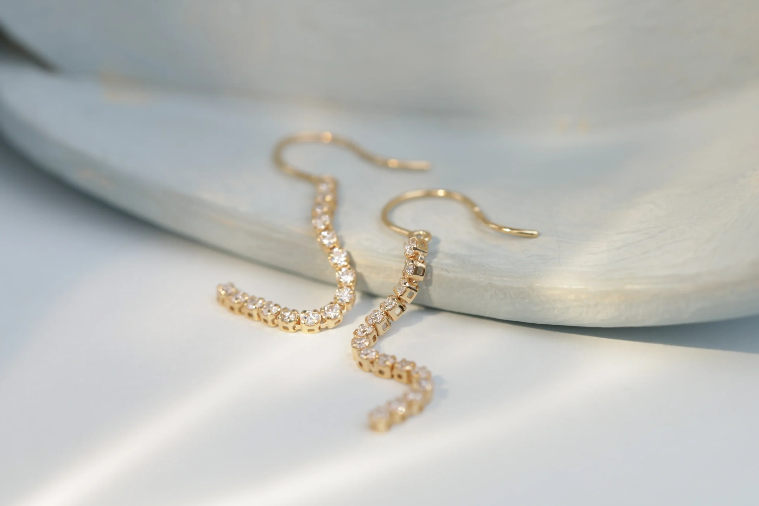 Серьги из золота с 30 бриллиантами в огранке «круглая» весом 0,36 карат, цвет 3, чистота 5.