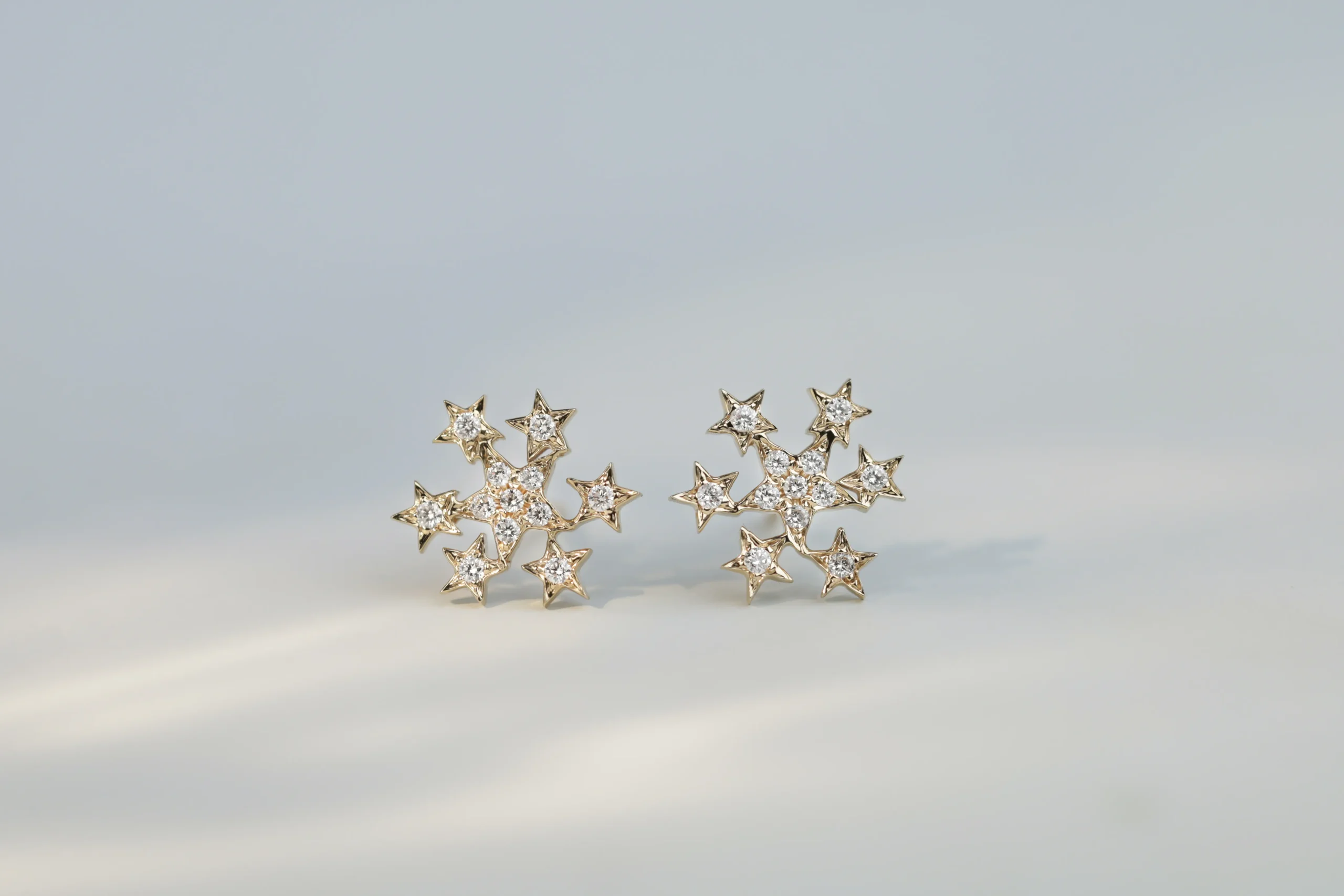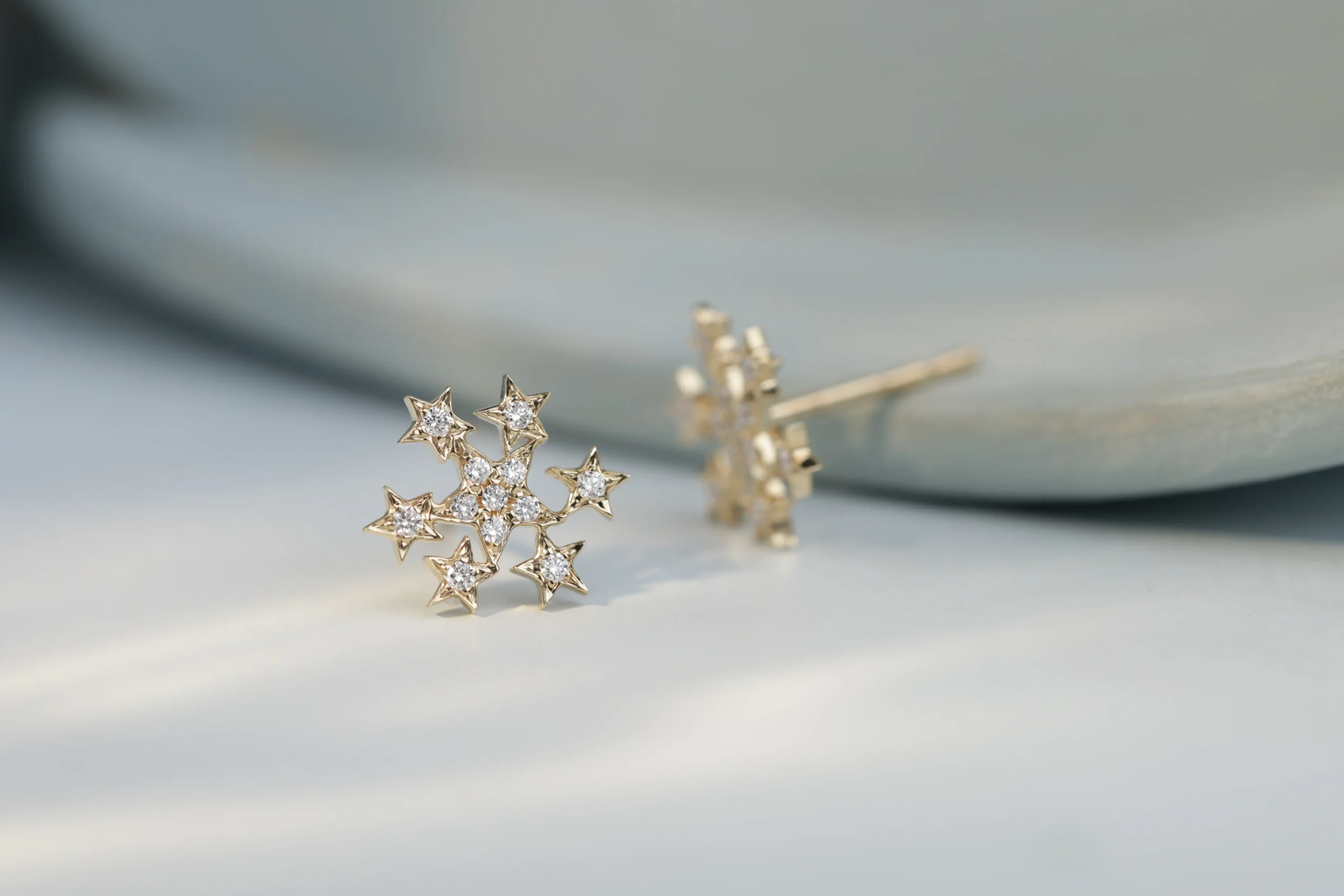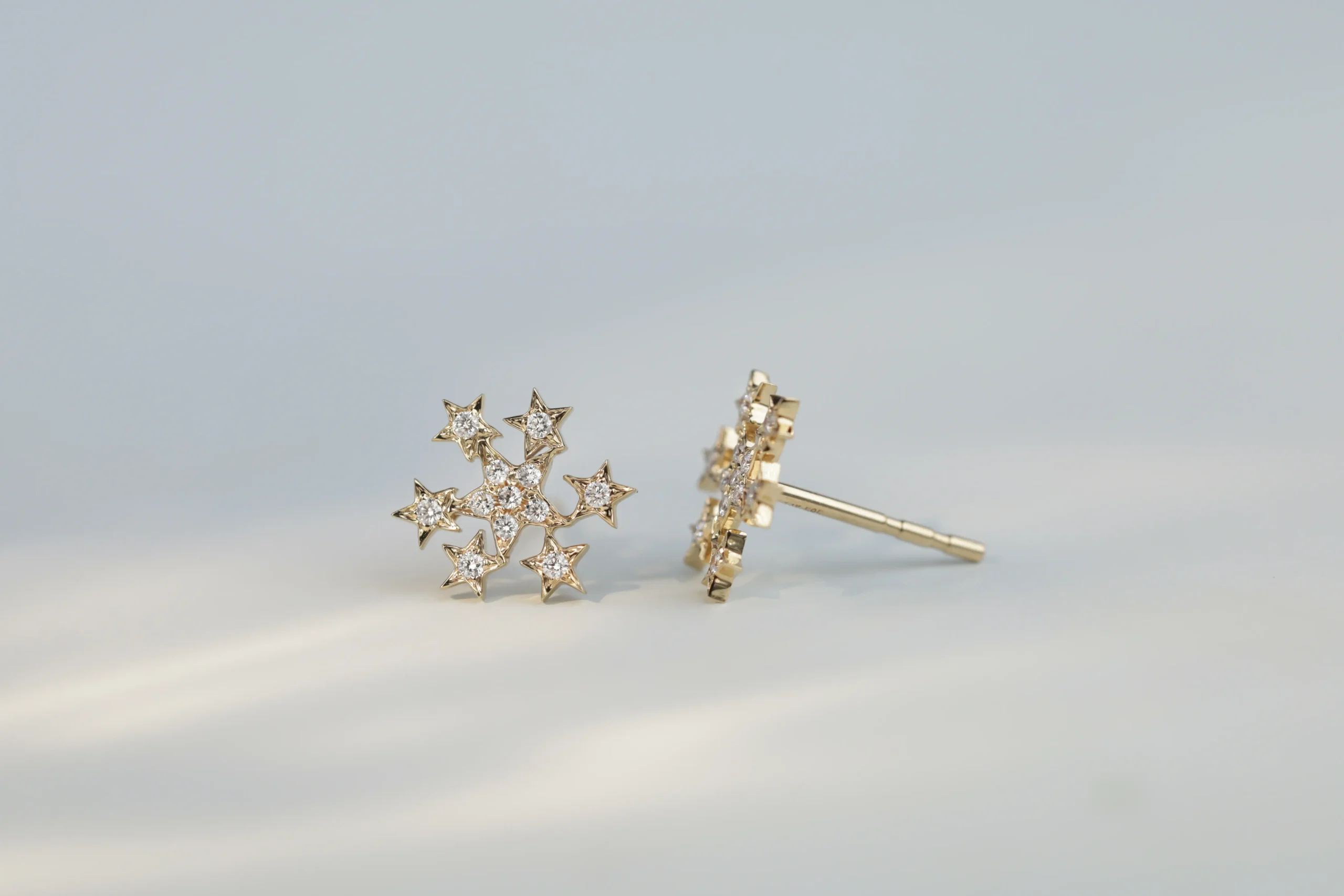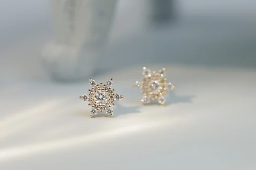 Намекнуть о подаркеЗолотые серьги общим весом 1,37 гр с 24 бриллиантами в огранке «круглая» 0,13 кт, цвет 3, чистота 5. Размер изделия 1 см.