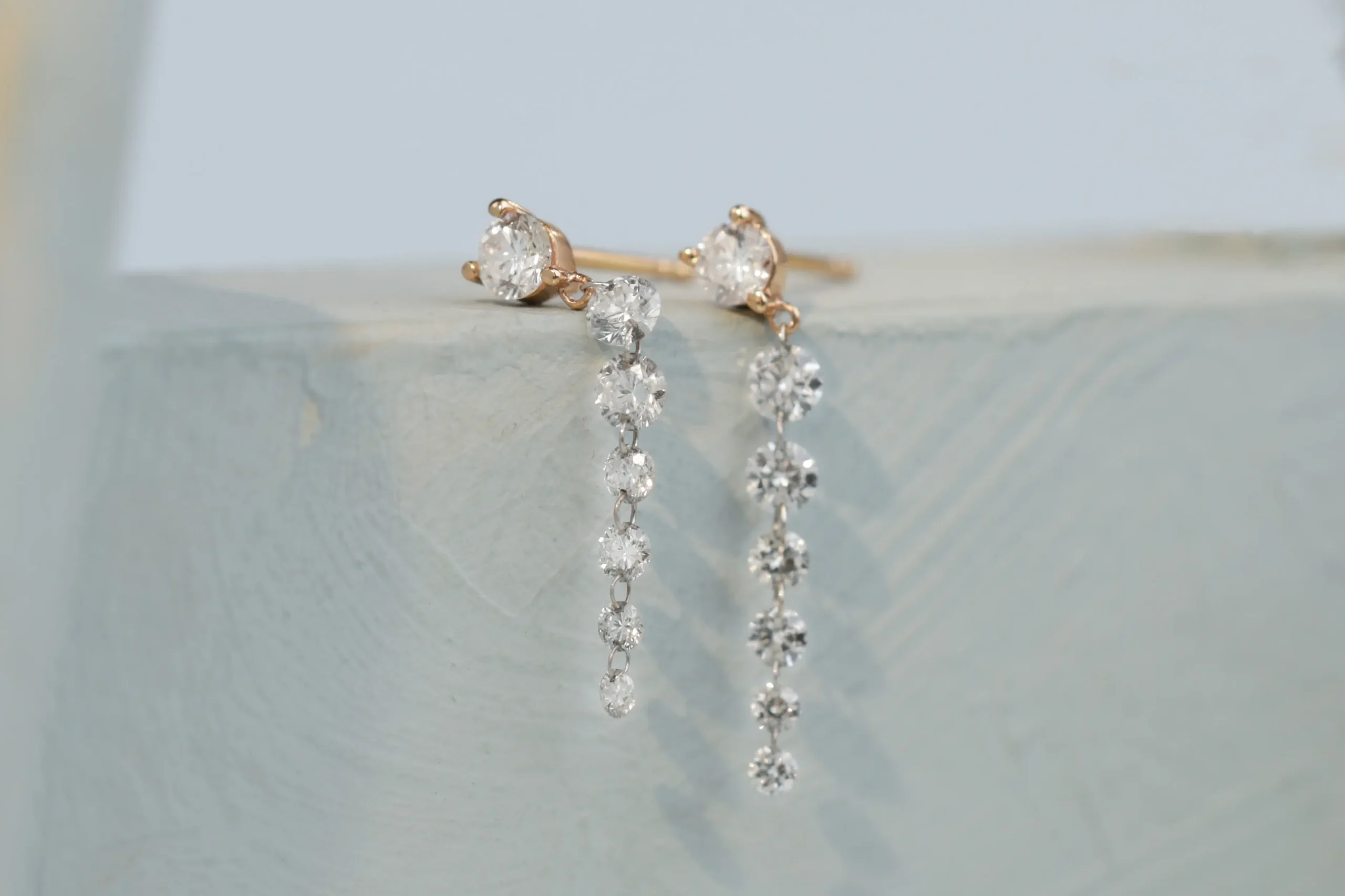 Серьги из золота с 14 бриллиантами в огранке «круглая» весом 0,91 карат, цвет 3, чистота 5.