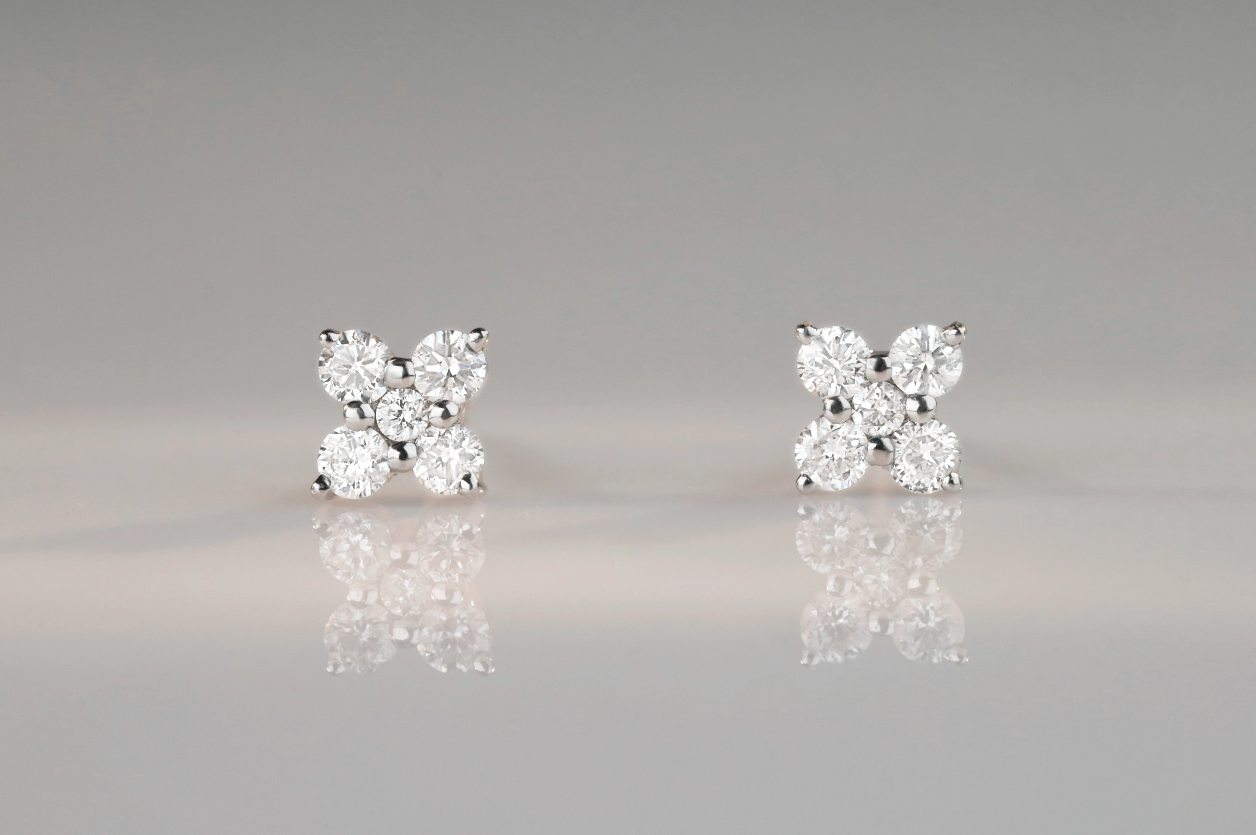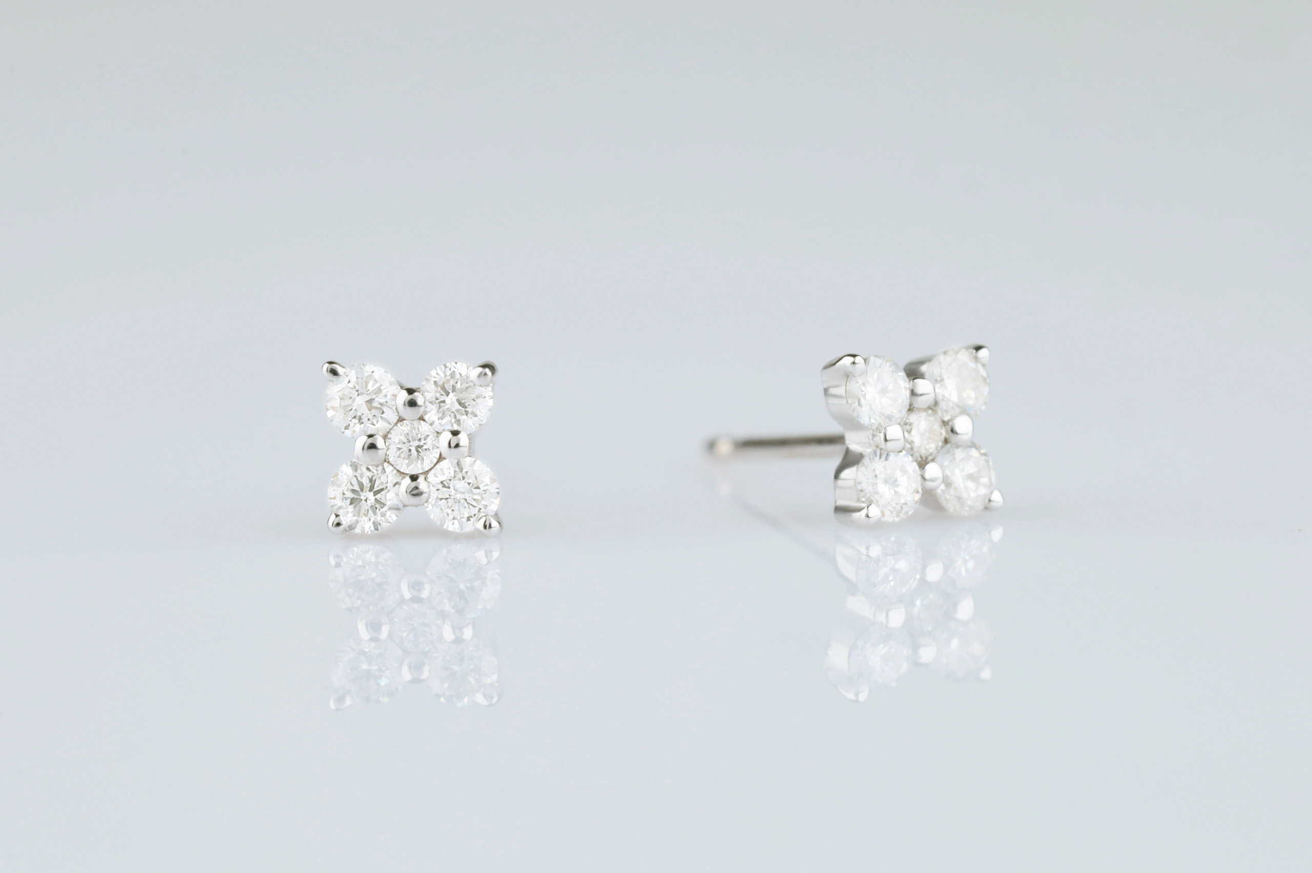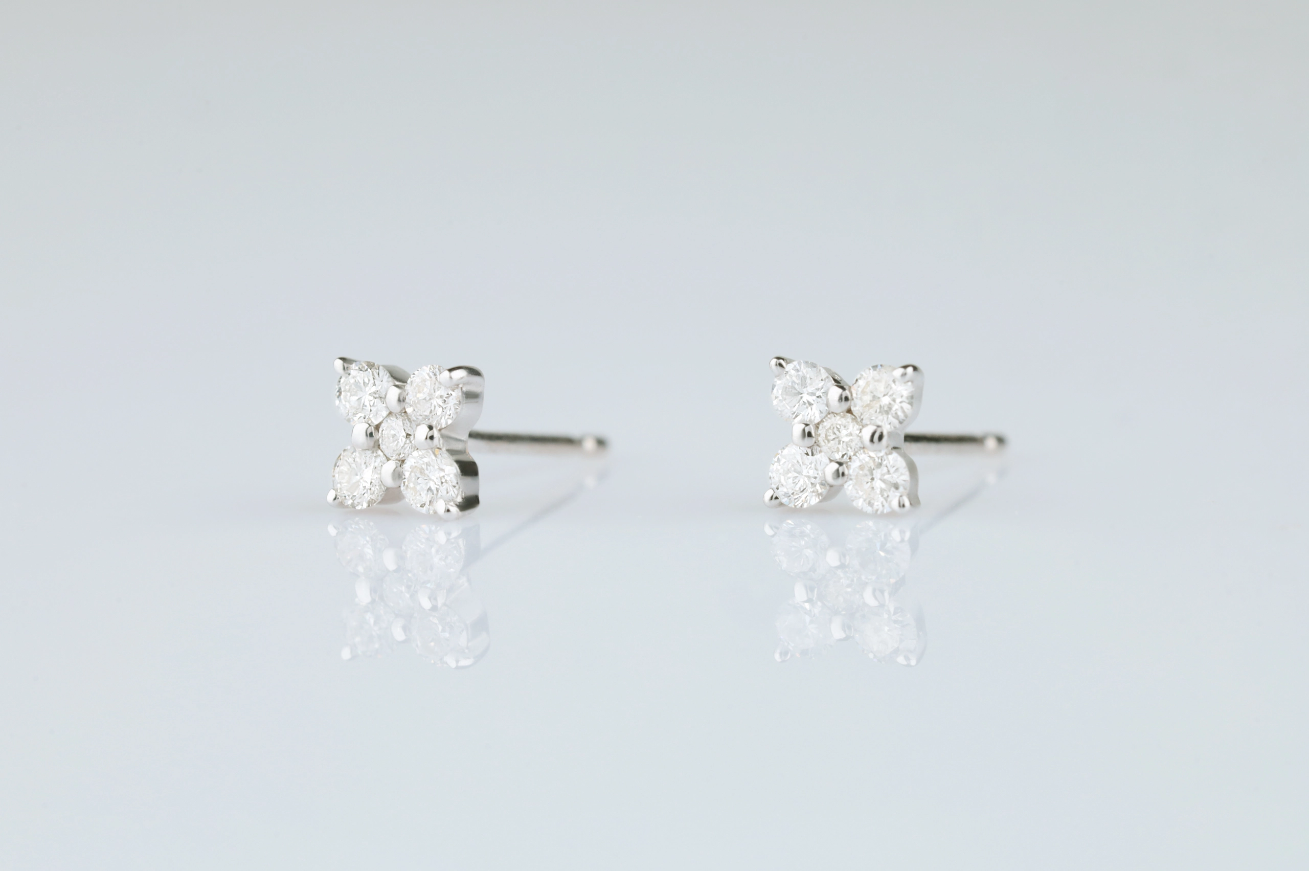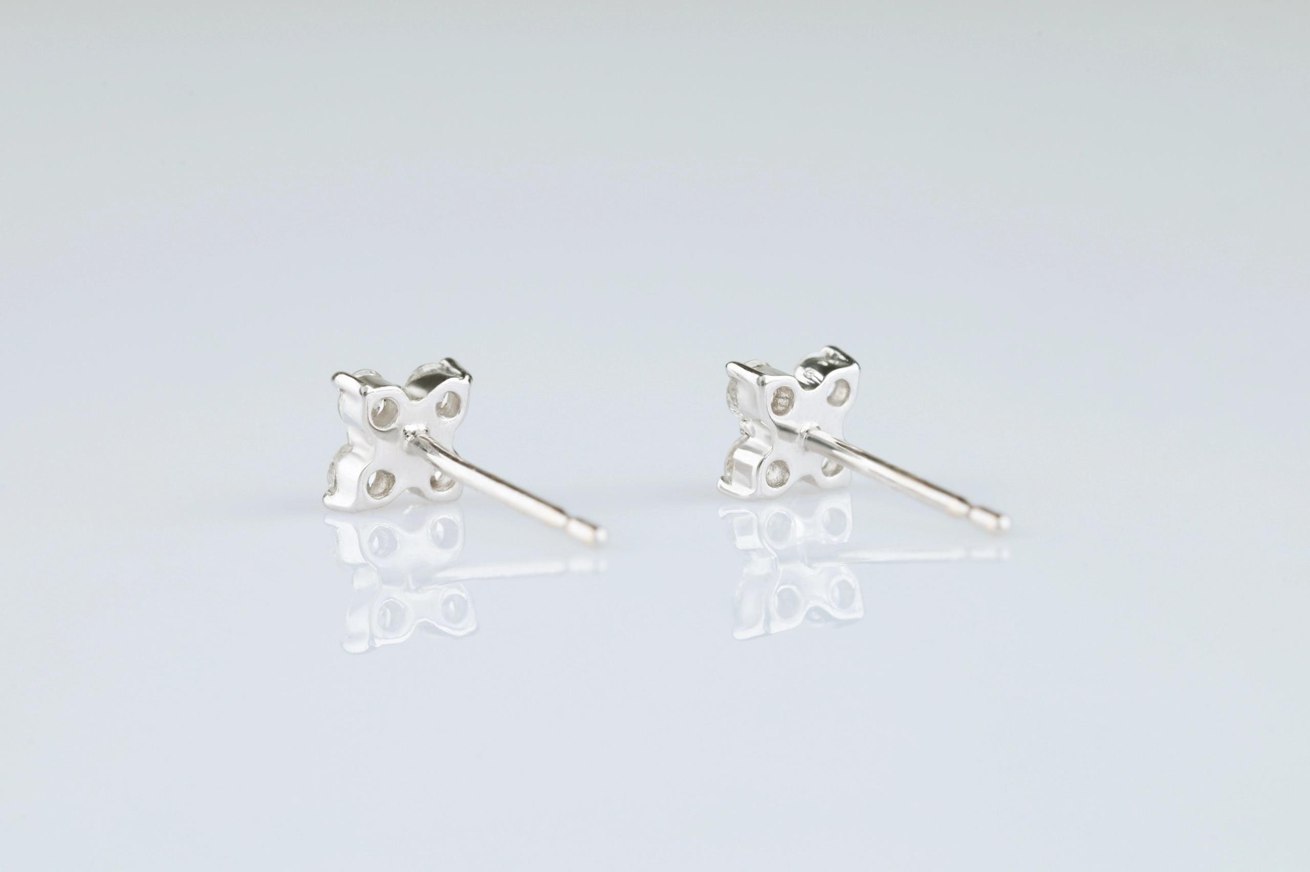 Золотые серьги общим весом 1,32 гр с 10 бриллиантами в огранке «круглая», 0,320 кт, цвет 4, чистота 5. Размер изделия 6 х 6 мм.