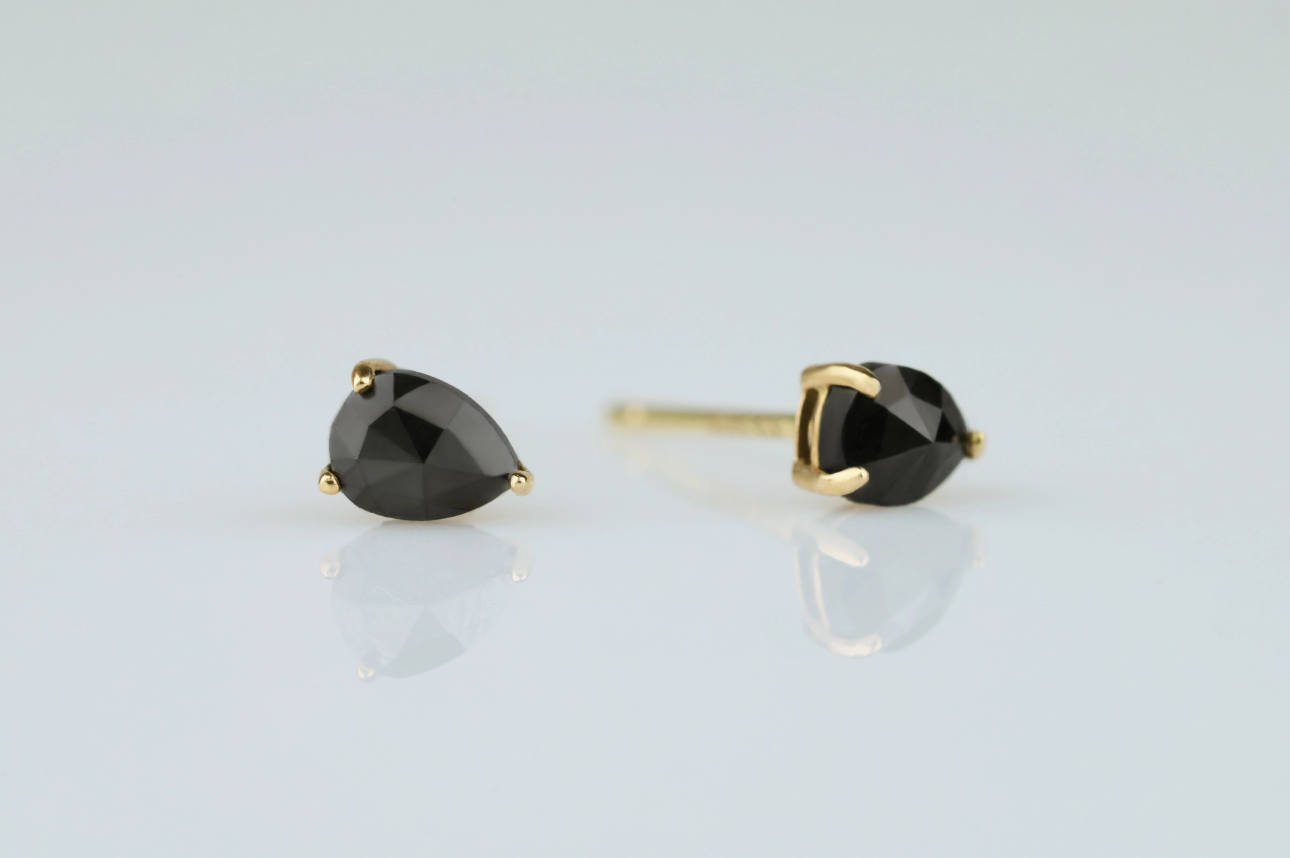 Намекнуть о подаркеЗолотые серьги общим весом 0,5367 гр с 2 черными бриллиантами в огранке «груша» 0,42 кт.