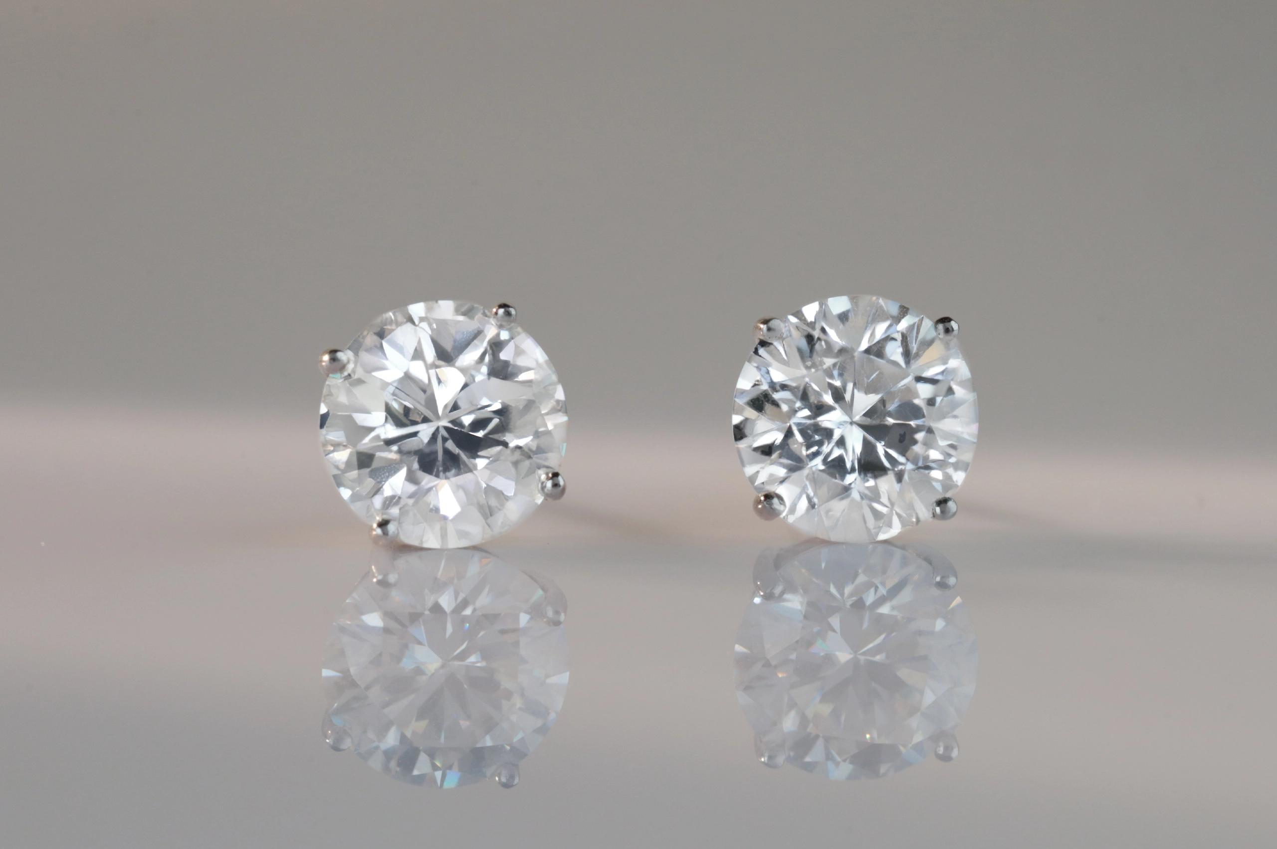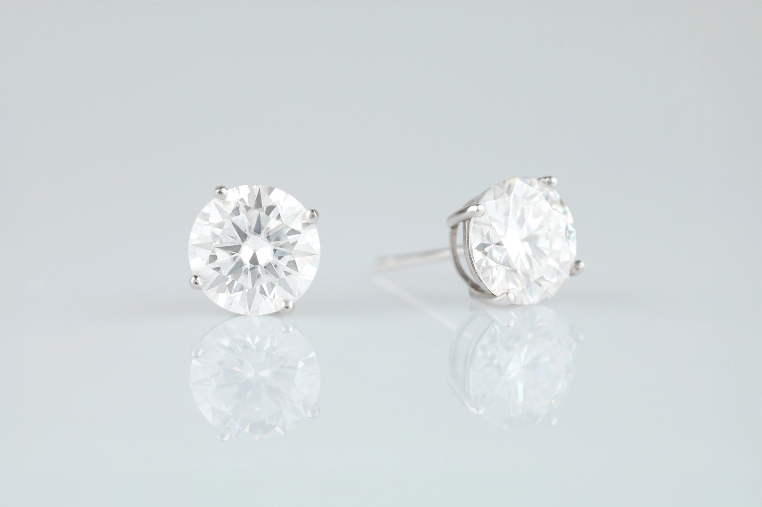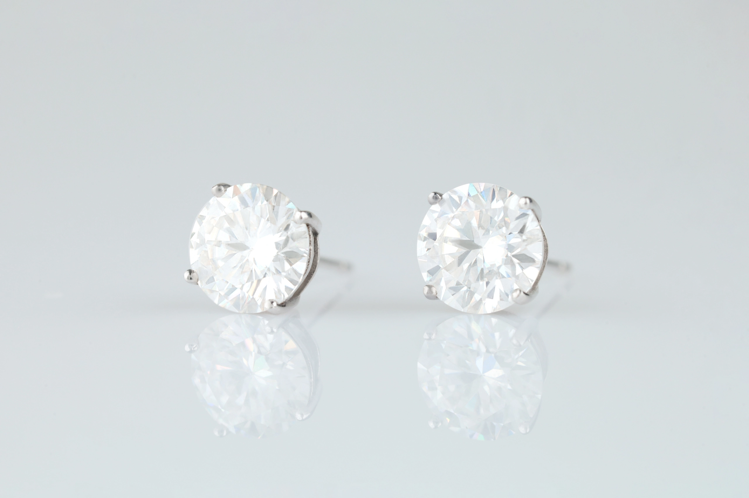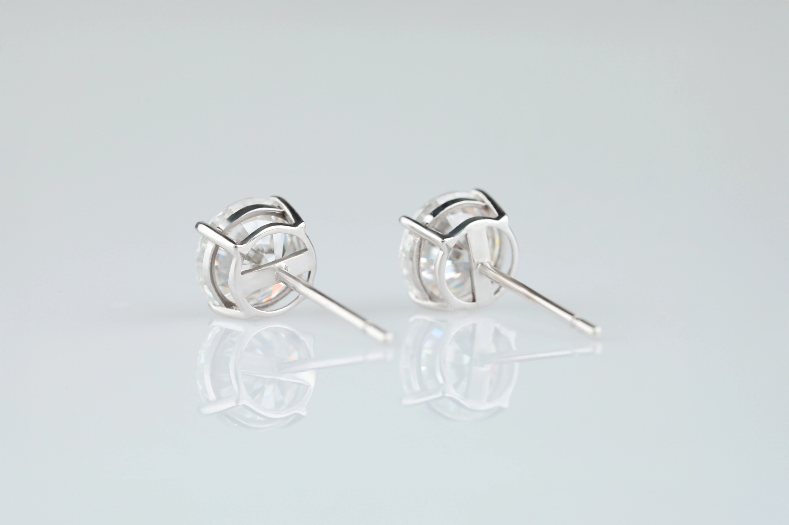 Серьги из золота с муассанитом в огранке «круглая» весом 2,0 карат.