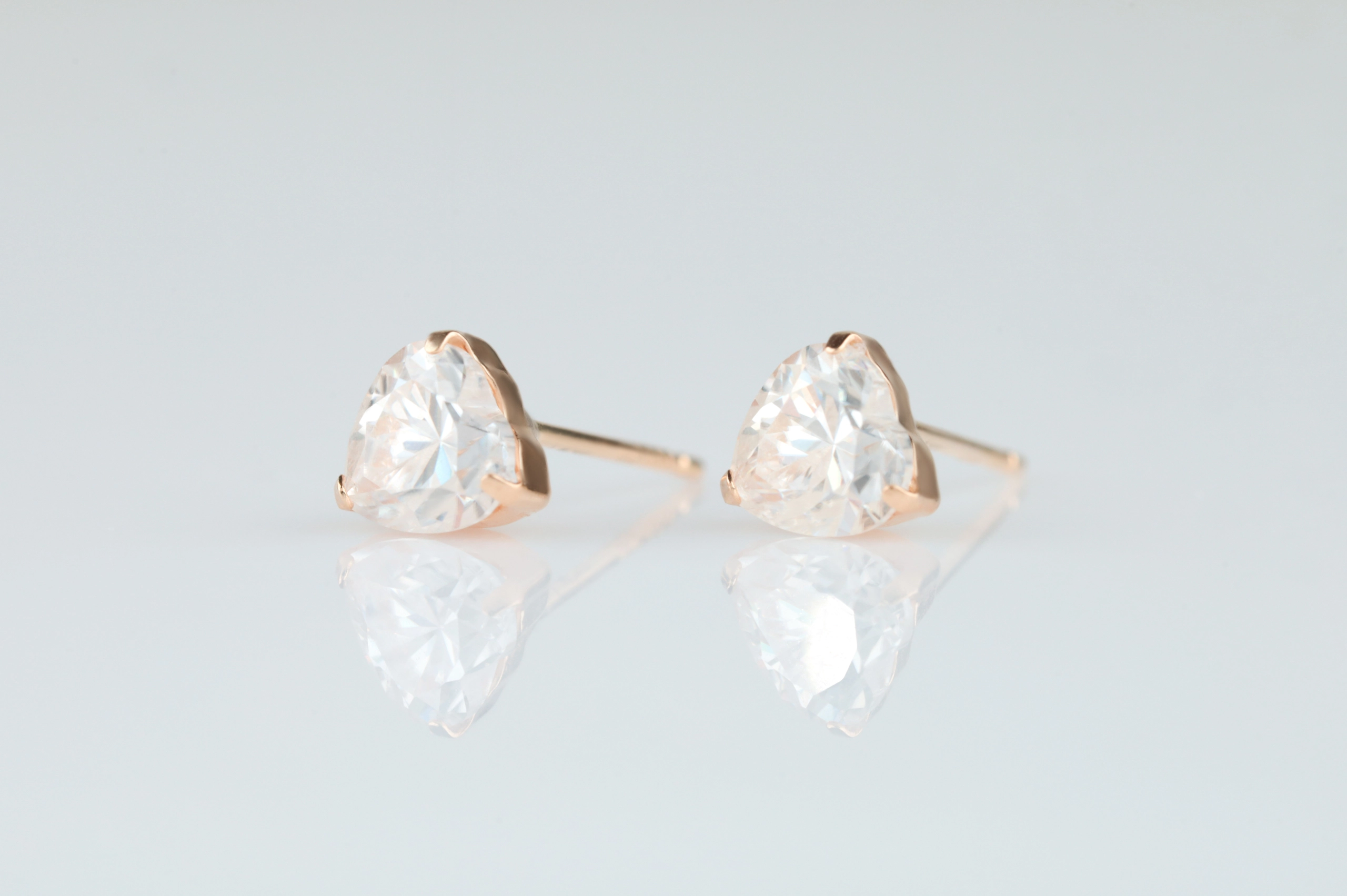 Серьги из золота с муассанитом в огранке «сердце» весом 1,02 карат.