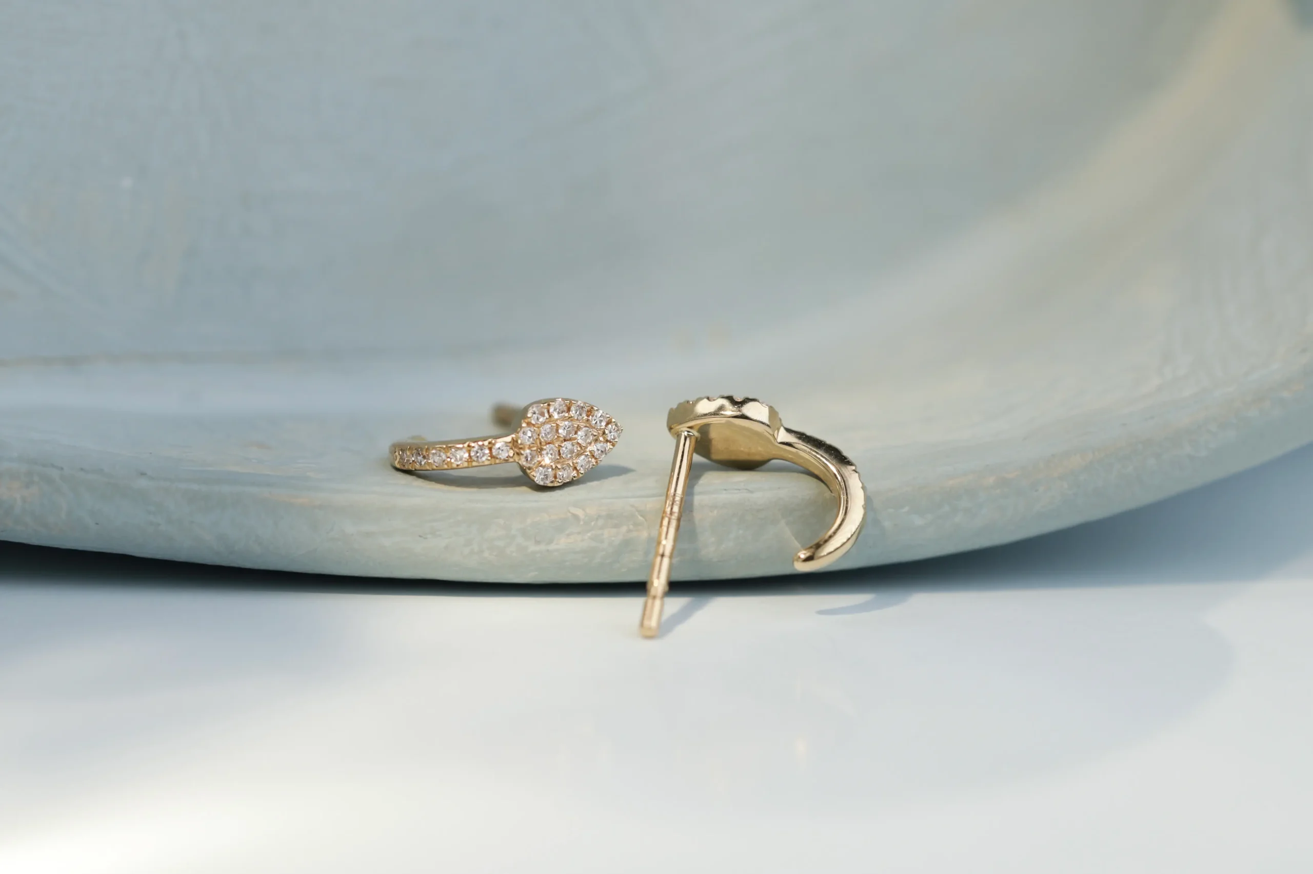 Серьги из золота с 62 бриллиантами в огранке «круглая» весом 0,20 карат, цвет 3, чистота 5. Размер 0,4×1 см.