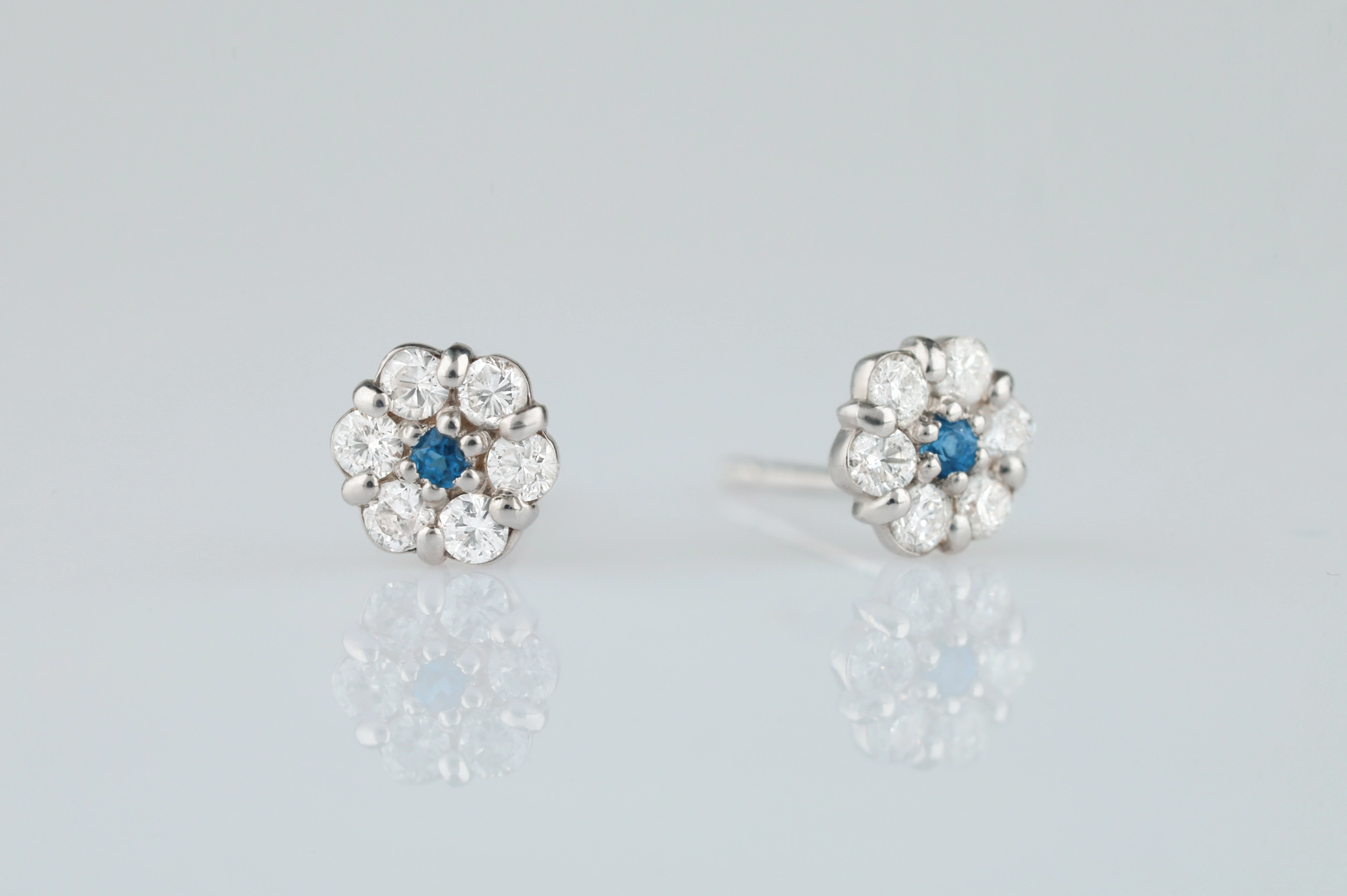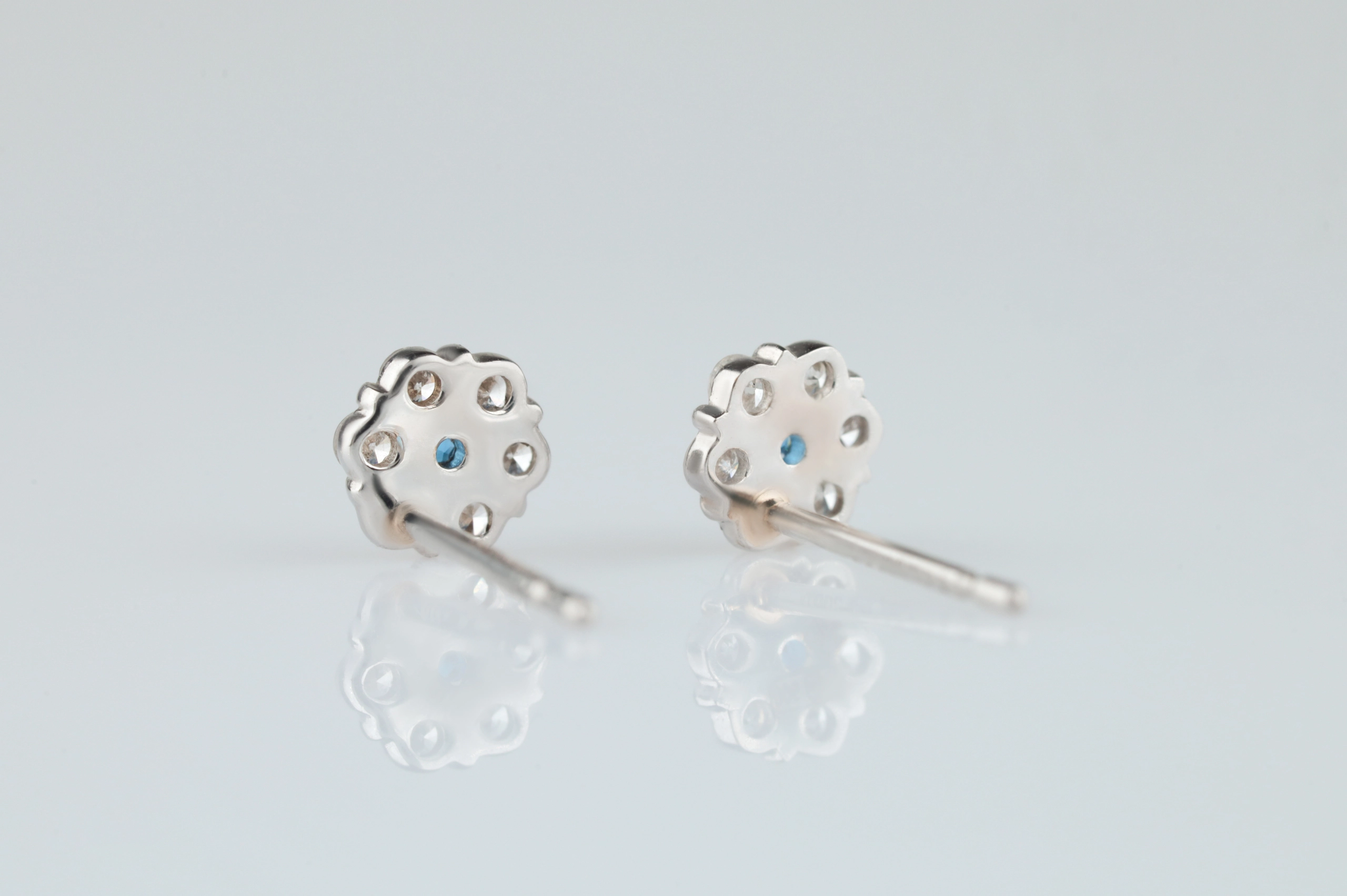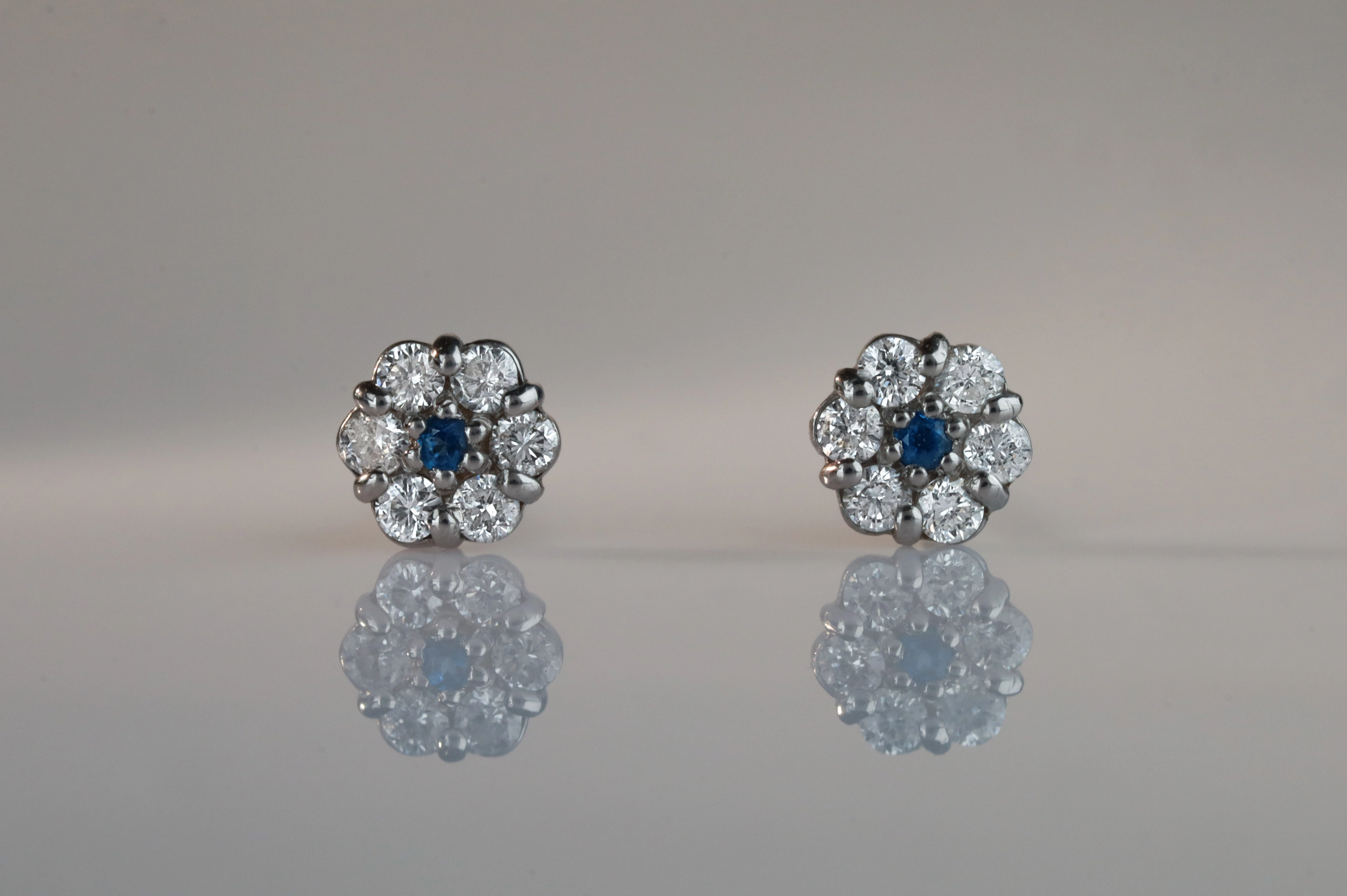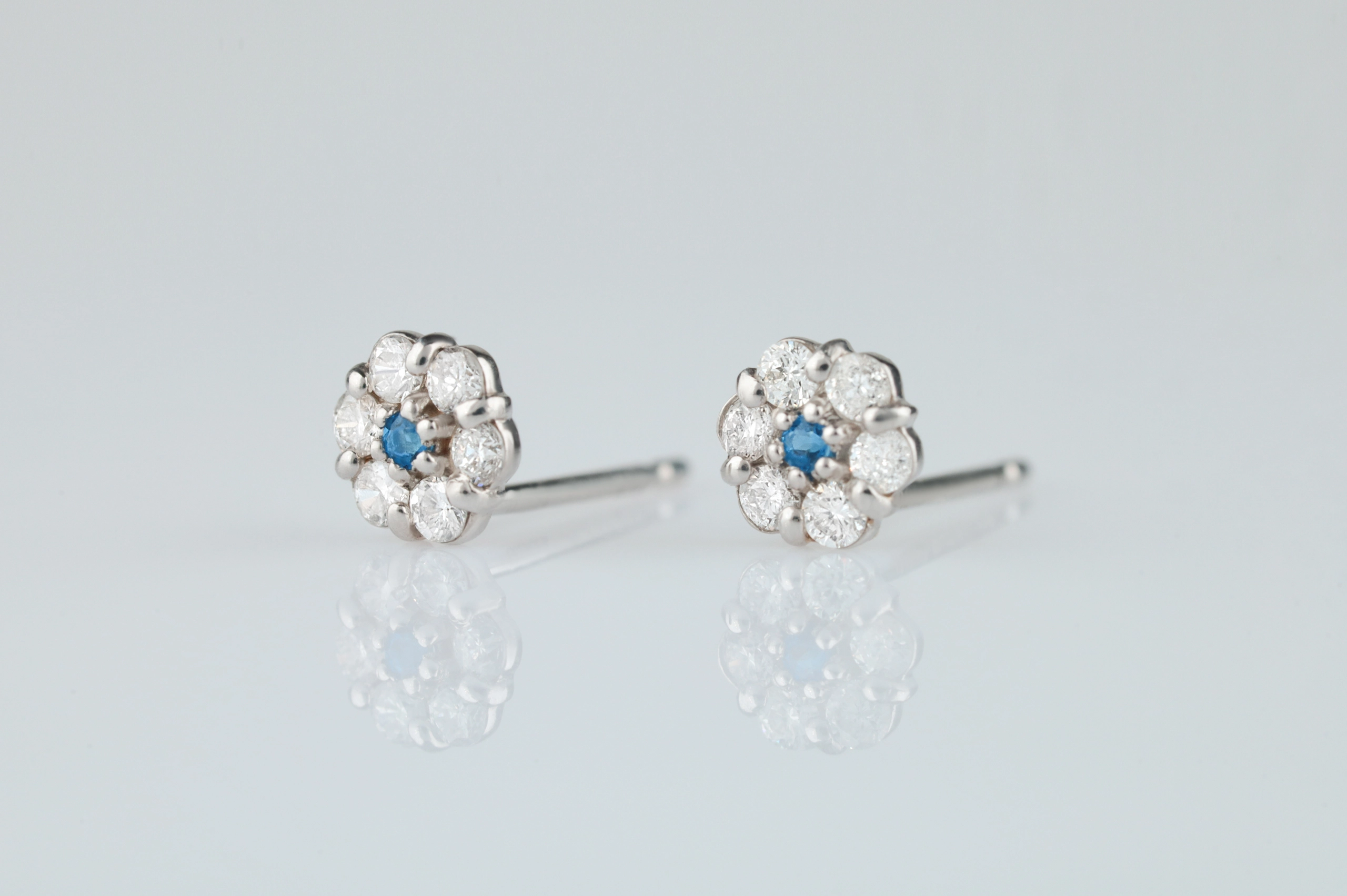 Серьги из платины с 12 бриллиантами в огранке «круглая» весом 0,02 карат, цвет 4, чистота 4; 1 синим лазуритом весом 0,18 карат.