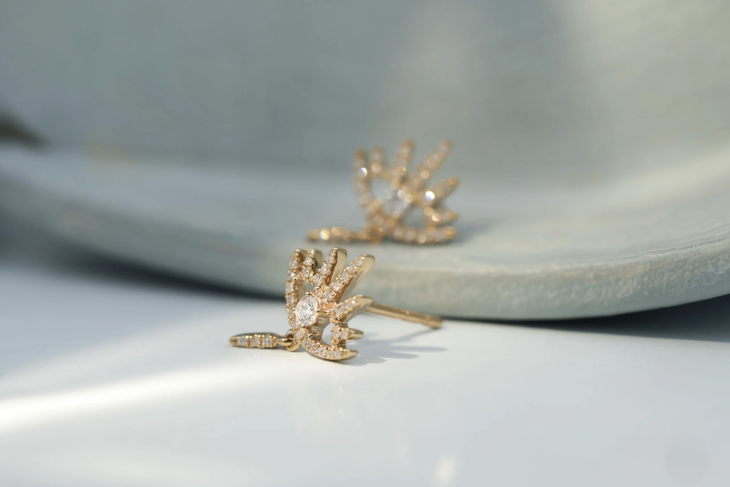 Серьги из золота с 62 бриллиантами в огранке «круглая» весом 0,20 карат, цвет 3, чистота 6. Размер 1×1,5 см.