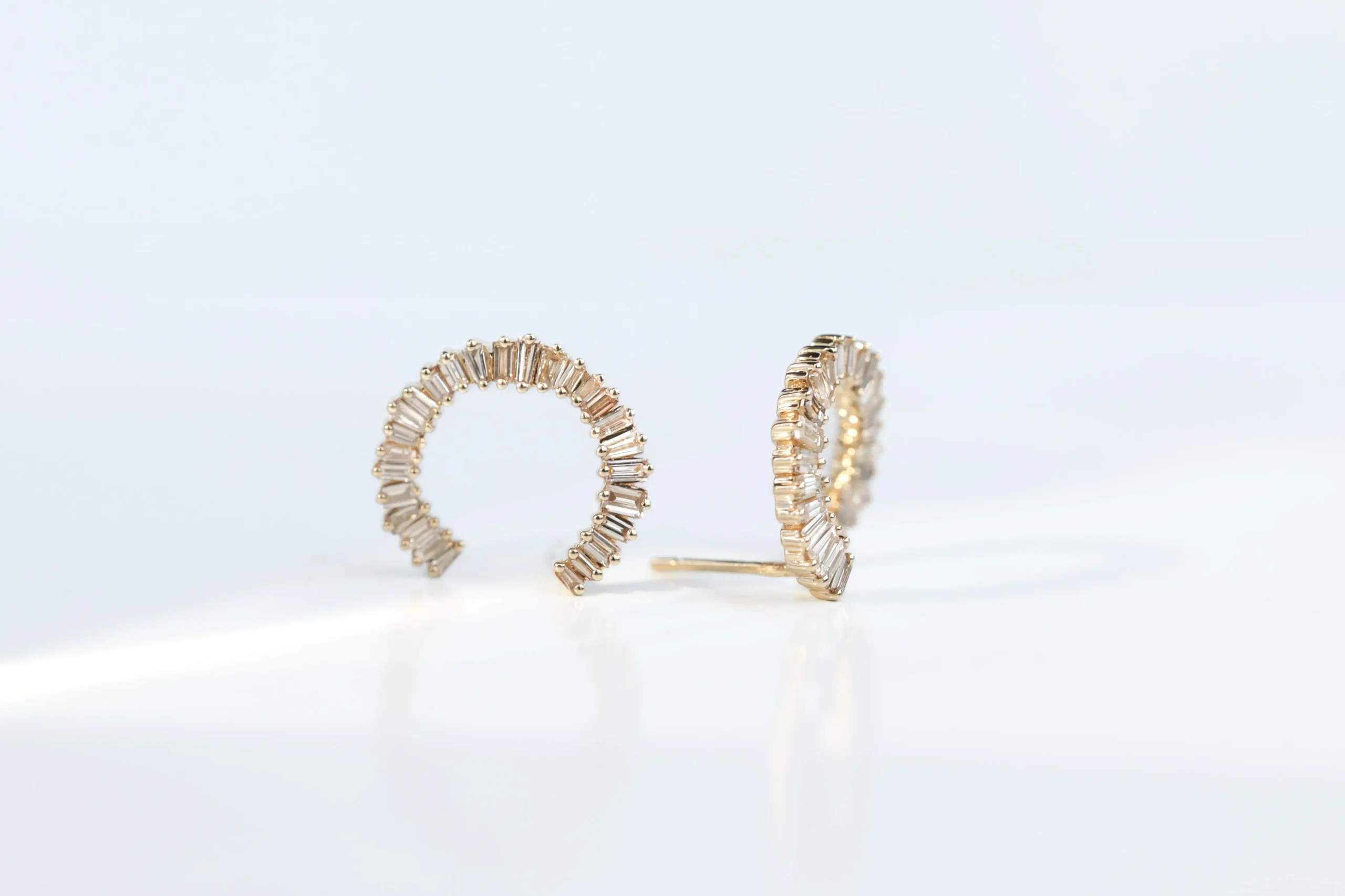 Серьги из золота с 48 бриллиантами в огранке «багет» весом 0,72 карат, цвет 4, чистота 6. Размер 1,5 см