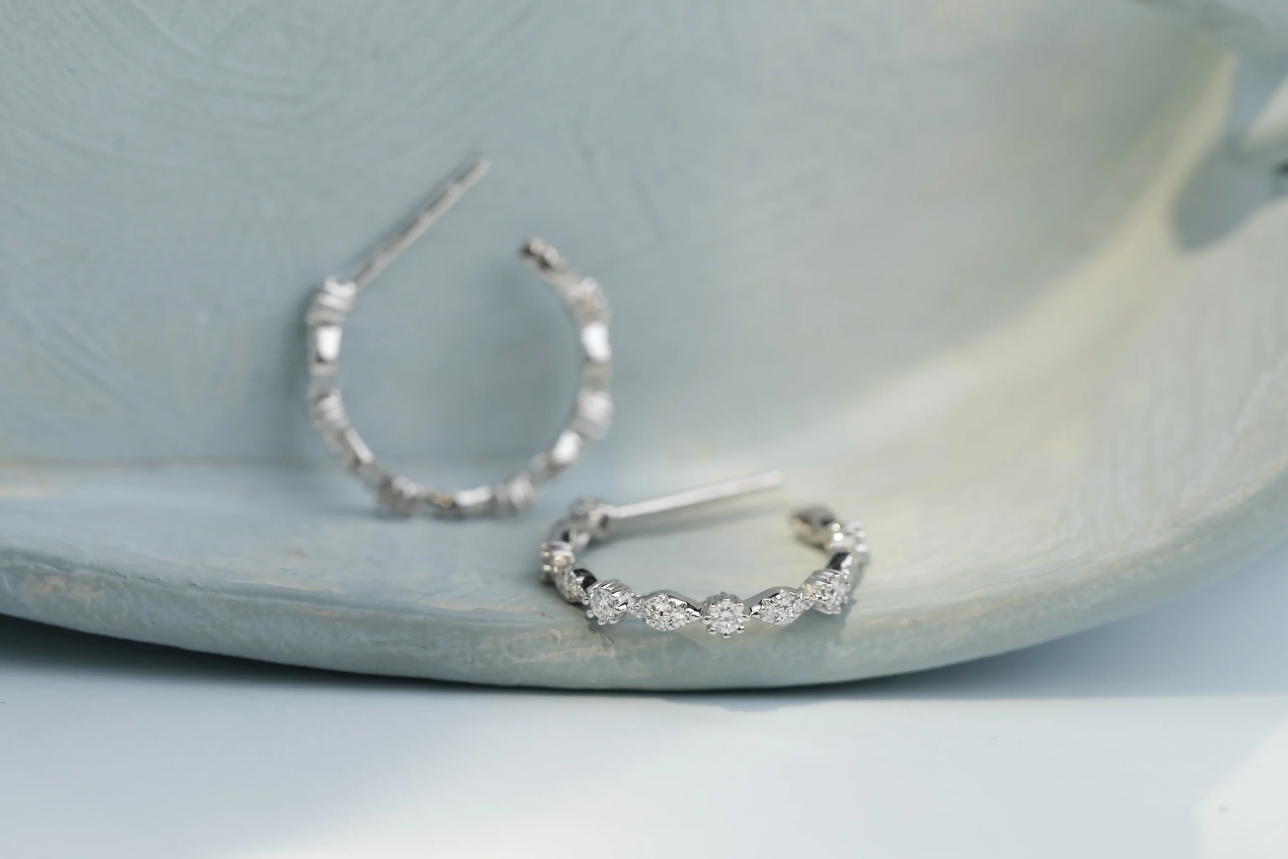 Серьги из золота с 60 бриллиантами в огранке «круглая» весом 0,37 карат, цвет 3, чистота 5. Диаметр 1,8 см.