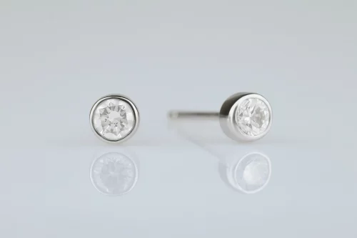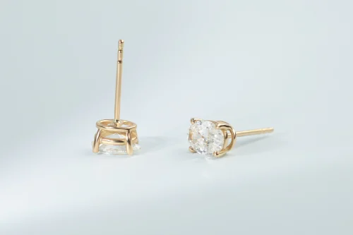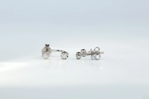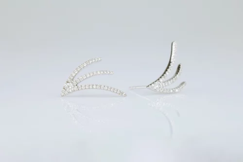 Серьги из золота с 32 бриллиантами в огранке «круглая» весом 2,00 карат, цвет 4, чистота 5. Размер 2,5×1,5 см.