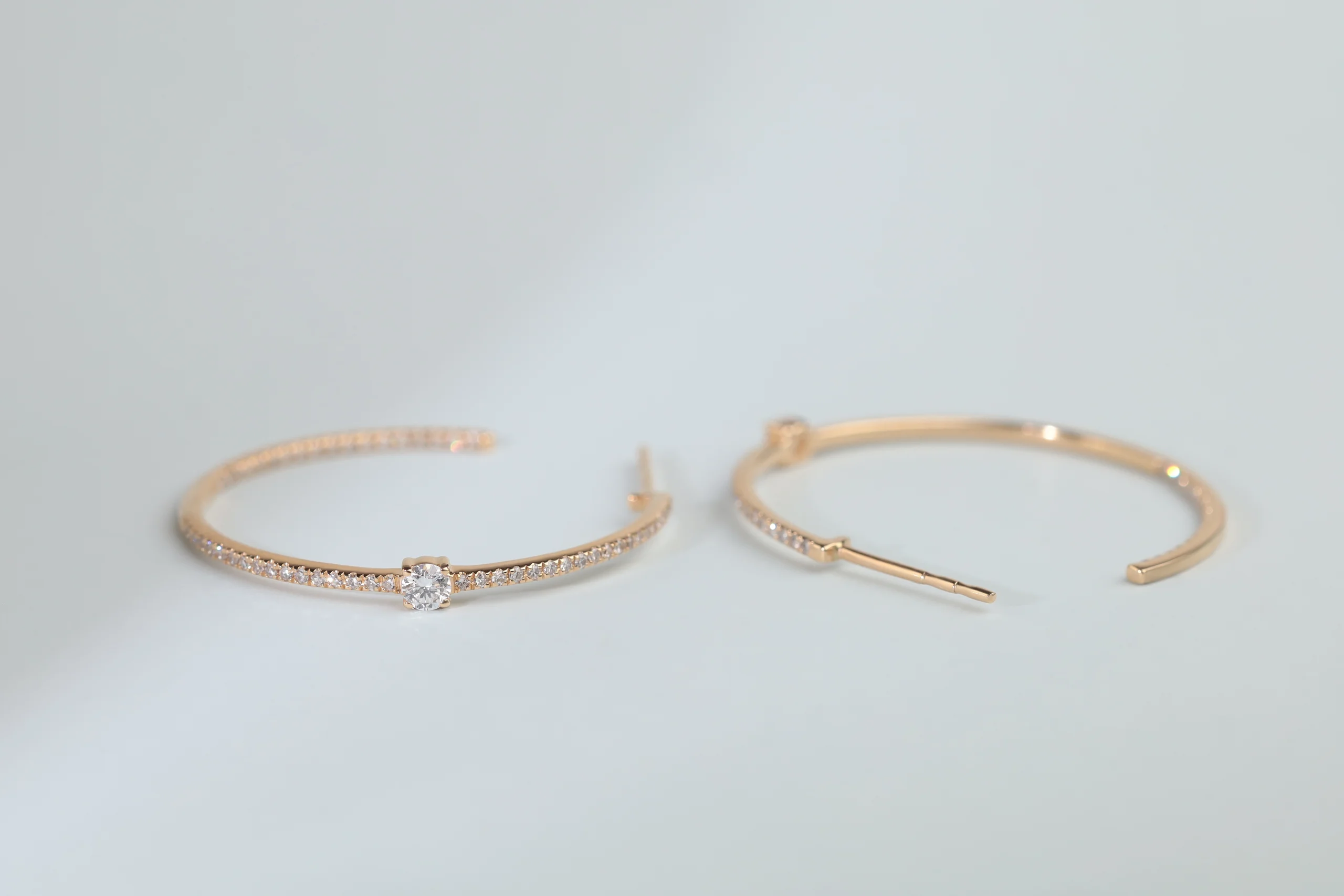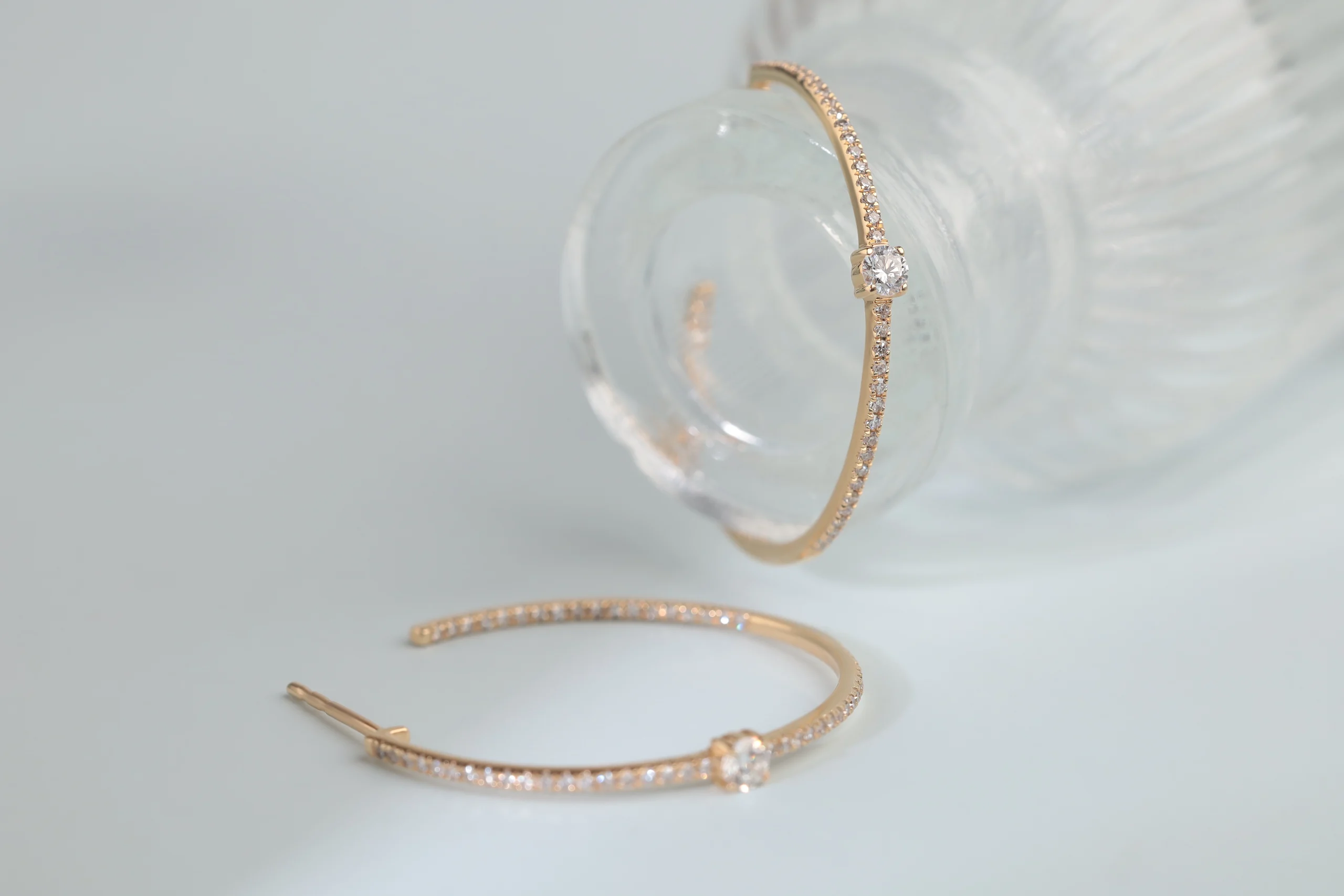 Серьги из золота с 108 бриллиантами в огранке «круглая» весом 0,34 карат, цвет 3, чистота 5. Диаметр 29 x 29 мм.