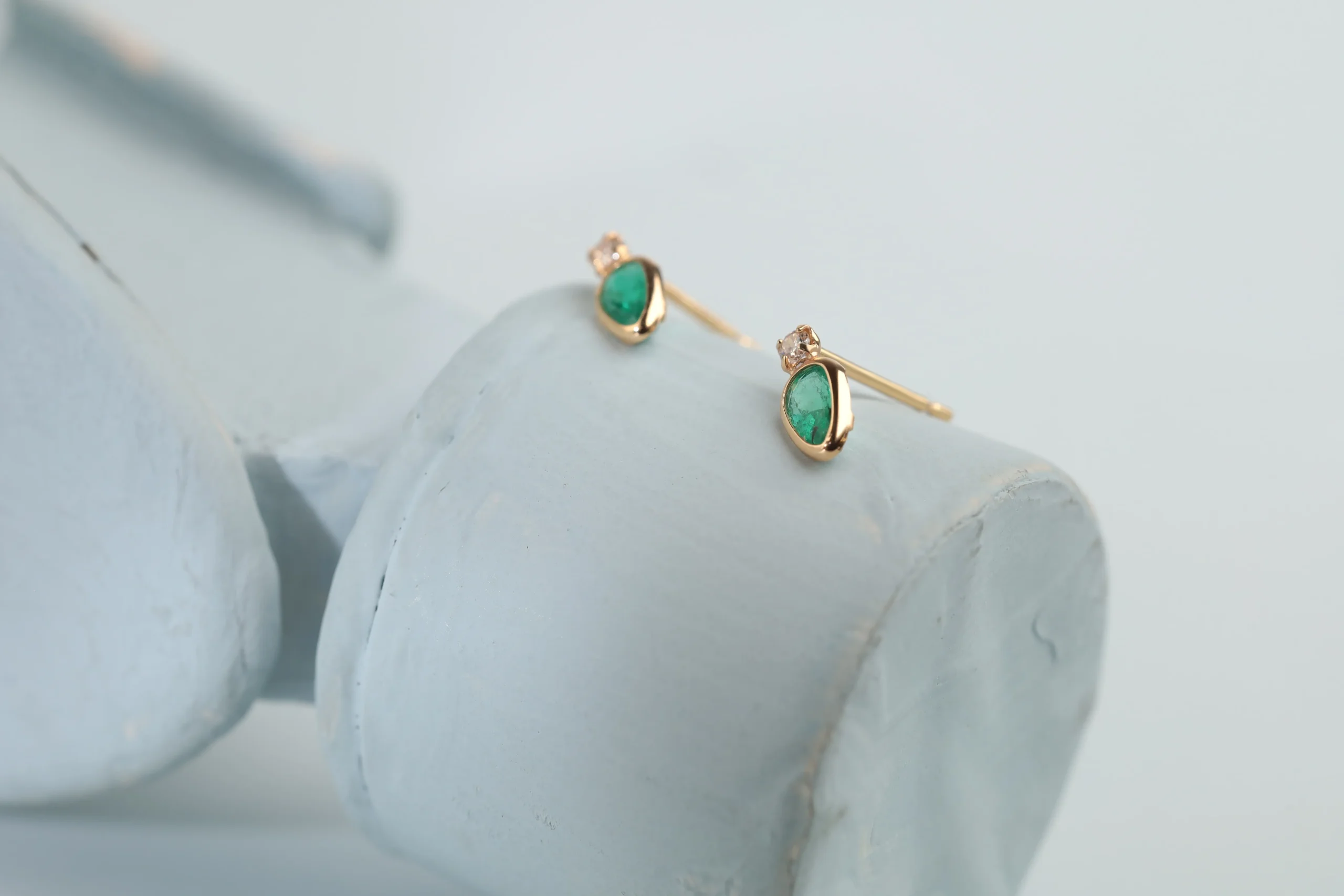 Намекнуть о подаркеСерьги из золота с 2 бриллиантами в огранке «круглая» весом 0,04 карат, цвет 4, чистота 5; 2 изумрудами в огранке «груша» весом 0,36 карат, цвет 2, чистота 3.