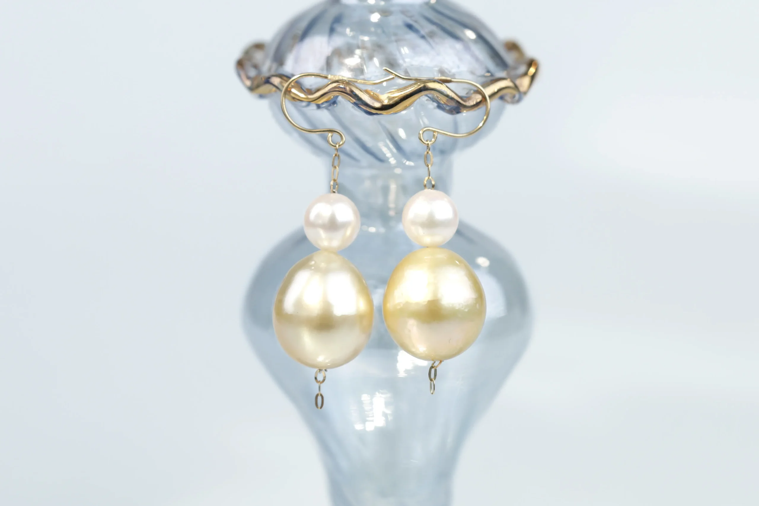 Серьги из золота с 4 жемчугом. Размер 3 см.